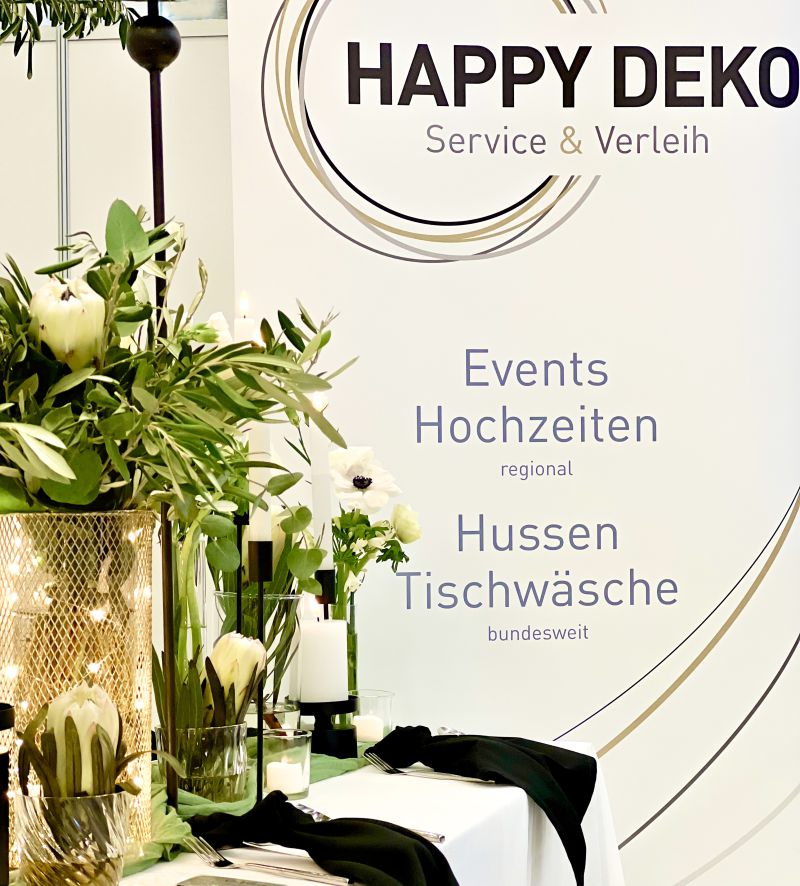 Happy Deko steht euch mit mehr als 30 jähriger Erfahrung in allen Bereichen rund ums Dekorieren zur Seite. Von der Idee bis hin zu unserem Komplett-Service.