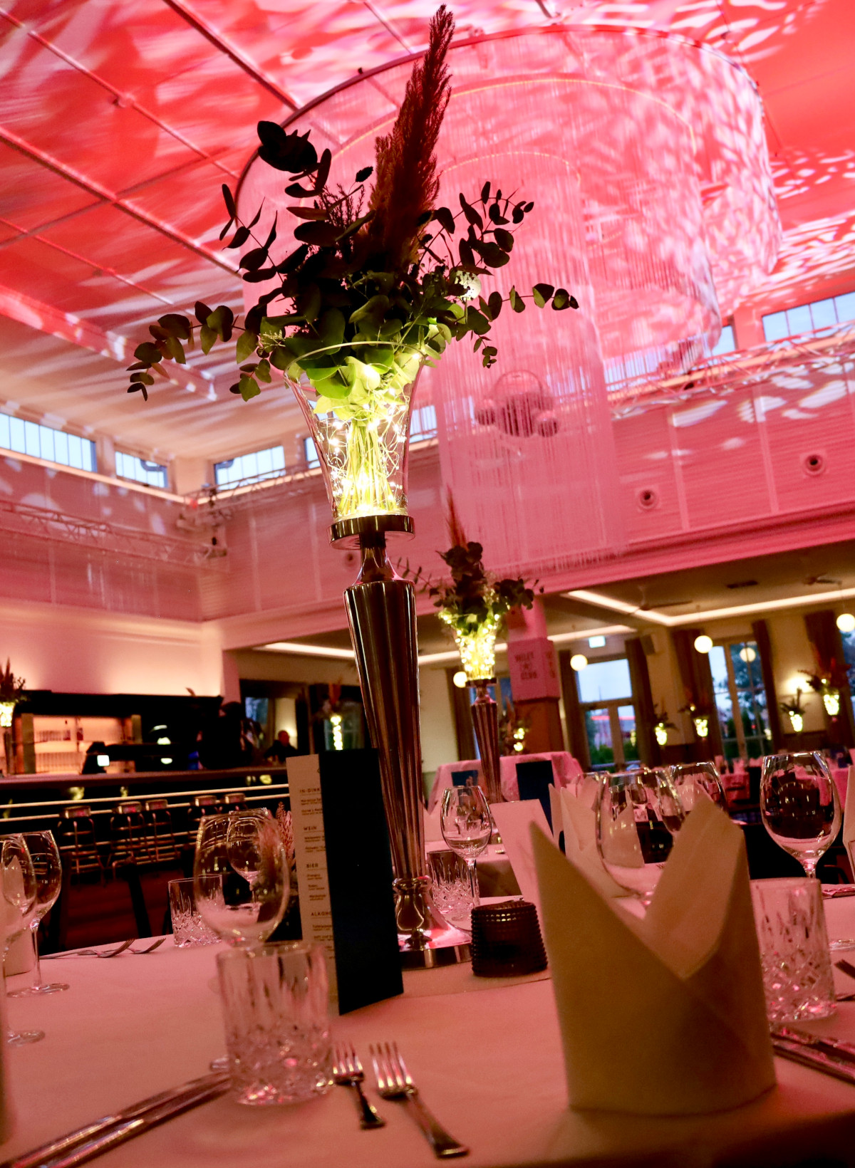 Besondere Highlights: Branding-Elemente wie Logoprojektionen, LED-Dekoration oder individuelle Centerpieces.