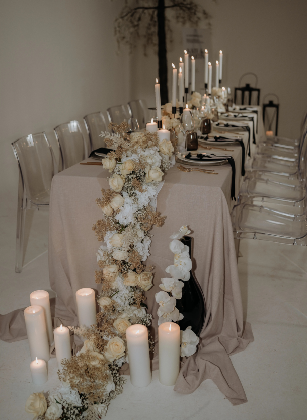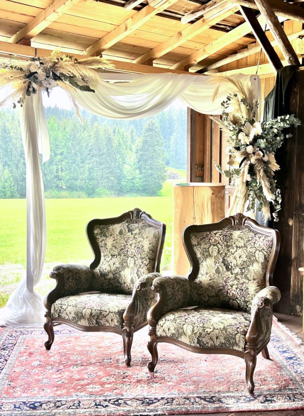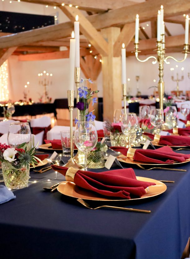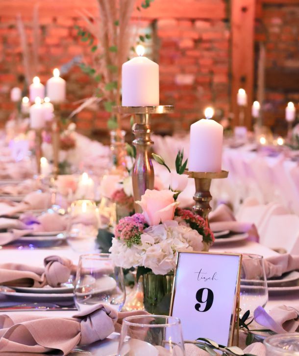 Egal ob Ihr von einer verträumten Vintage-Hochzeit, einer edlen Gala in Weiß oder einer lockeren Boho-Feier im Grünen träumt – die Details machen das Ambiente. Wir helfen Euch dabei, dass Eure Location nicht nur „schön“ aussieht, sondern sich nach Euch anfühlt.